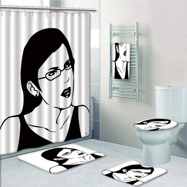 Prtau Girl Woman Face Meme Unpleasant Of Regular Life Situation Online Hipster 5 Piece Bathroom Set Shower Curtain Bath Towel Bath Rug Contour Mat And Toilet Lid Cover Walmart Com